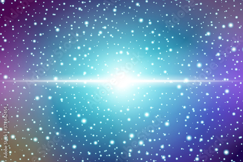 Obraz premium explosion of star with shiny glow beam on colorful starry nebula background...
