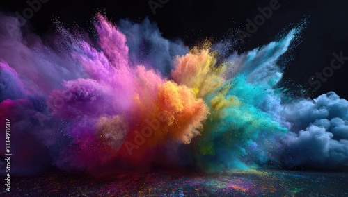 Fototapeta premium Explosion of vibrant colored powders against a dark background, creating...