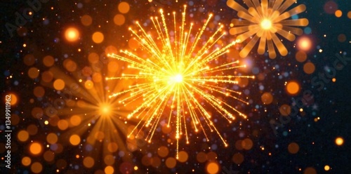 © Prayad, Naklejka premium explosion of yellow fireworks in a burst of vibrant colors, intense light, bright lights, vibrant colours