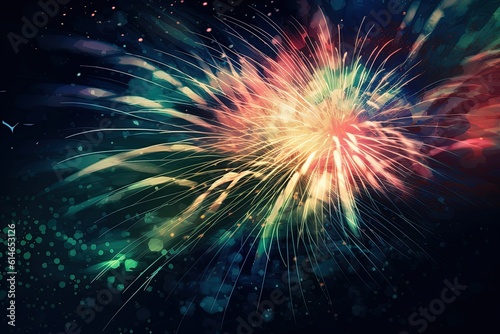 Fototapeta premium Explosions of Brilliance: A dazzling display of red and blue fireworks sparkle, illuminating the night sky with vibrant bursts of color. Generative Ai