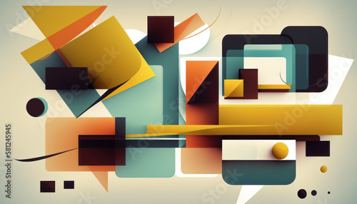 © Murat, Naklejka premium Explosive Abstraktion in 3D: Geometrische Formen, Farbverläufe und Kontraste verschmelzen zu einem kreativen und surrealen Kunstwerk voller Muster und lebendiger Farben