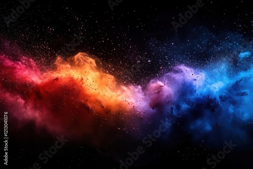 © Vesna, Fototapeta premium explosive burst of vibrant rainbow powder creates a striking visual spectacle against a dark backdrop capturing motion and energy in a wide panoramic view
