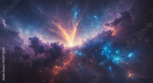 Obraz premium Explosive cosmic nebula event outer space digital art dark environment...
