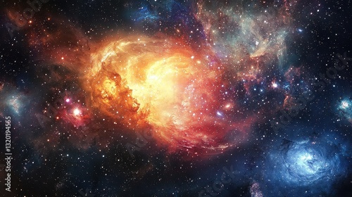 © Kan, Fototapeta premium Explosive Cosmic Nebula in Vibrant Colors and Starry Backgrounds