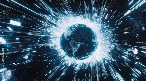 Obraz premium Explosive Energy Burst Surrounding a Digital Earth Globe Visual