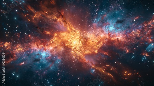 Naklejka premium Explosive Galactic Nebula in Vibrant Stellar Colors