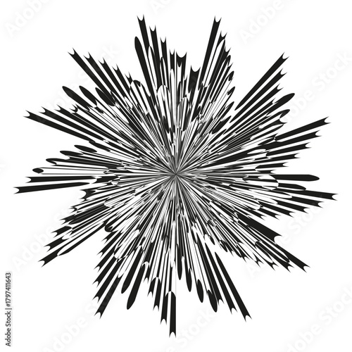 Fototapeta premium Explosive sunburst graphic. Black line Vector. Dynamic radial element....