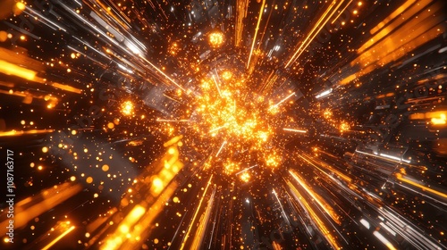 Naklejka premium Explosive visuals of cosmic energy digital space abstract art dark environment dynamic perspective motion concept