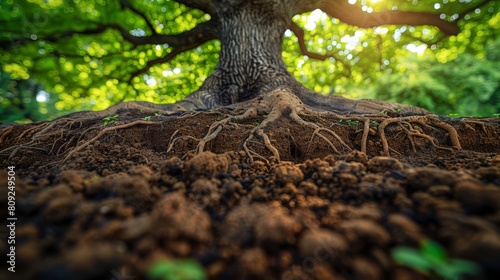 Obraz premium Exposed tree roots on a forest floor
