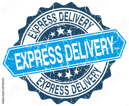 © Aquir, Fototapeta premium express delivery blue round grunge stamp on white