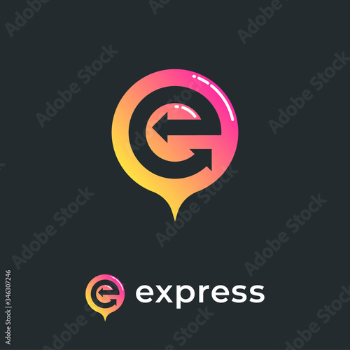 Obraz premium Express logo. E monogram with arrows like map marker. E monogram with...