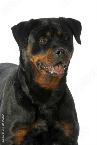 Fototapeta premium expression de vivacité dans le regard d'un rottweiler de face