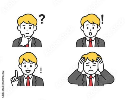 © Soron, Naklejka premium Expression Icon Set of Young Businessman in Suit