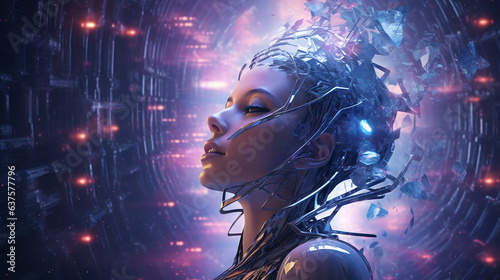 © TechArtTrends, Fototapeta premium Expressive AI Robot's Immersive Dream: Authentic Contemplation