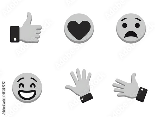 © KAMAPAN, Obraz premium Expressive emoji hand gestures for communication.