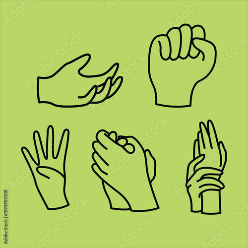 Fototapeta premium Expressive Hand Illustrations Showcasing Diverse Gestures on Green Background