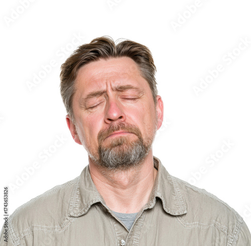 © Karina, Obraz premium Expressive man with closed eyes portrait neutral isolated on transparent background
