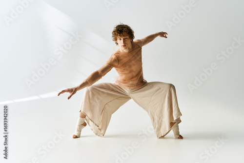 Obraz premium Expressive movements of a young dancer in a contemporary studio setting