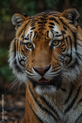 Fototapeta premium Expressive portrait Amur tiger. Animal. Close-up captures character and personality. Ideal for nature lovers, pets and wildlife