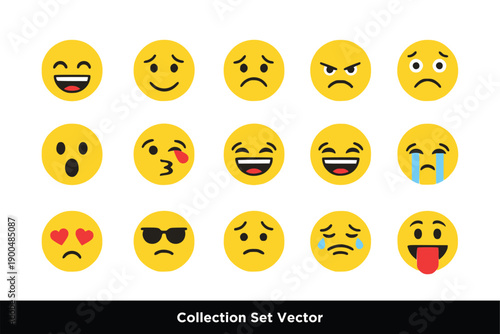 Fototapeta premium Expressive Yellow Face Emoji Icons for Communication
