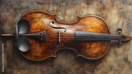 Fototapeta premium Exquisite Antique Violin with Intricate Wood Grains and Varnish in a Cozy Artisan s Workshop