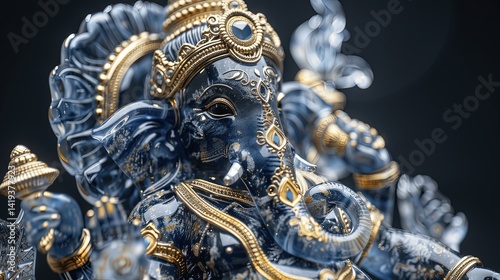 © Chayanan, Fototapeta premium Exquisite Blue Lord Ganesha Statue with Detailed Ornaments and Textures