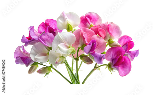 © MdRipon, Obraz premium Exquisite Bouquet of Sweet Pea Flowers in Pink, Purple, and White Hues