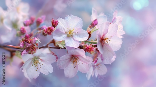 Fototapeta premium Exquisite closeup, cherry blossoms in full bloom on a spring branch closeup