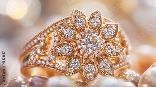 Fototapeta premium Exquisite Diamond and Gold Engagement Rings Showcasing Elegance and Craftsmanship