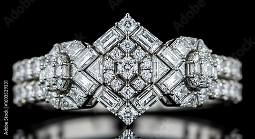 © Kremuzz, Obraz premium Exquisite Diamond Ring Set Showcasing Intricate Geometric Patterns and Sparkling Brilliance