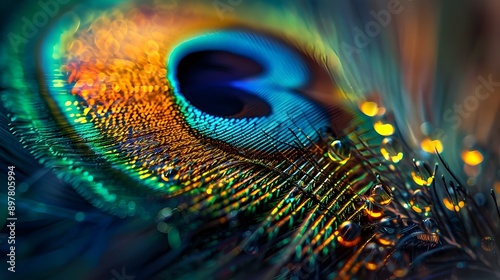 © panu101, Naklejka premium Exquisite Iridescent Peacock Feather in Stunning Close-Up