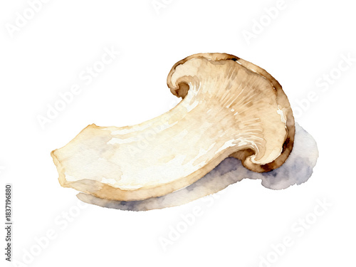 © bao, Fototapeta premium Exquisite Mushroom: A singular mushroom, rendered in a delicate watercolor, showcases its elegant form and earthy tones. It conveys a sense of culinary artistry and natural elegance.