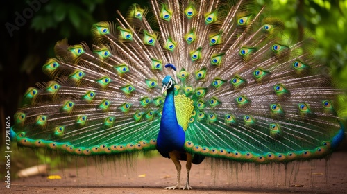 Obraz premium Exquisite peacock displaying its vibrant tail feathers