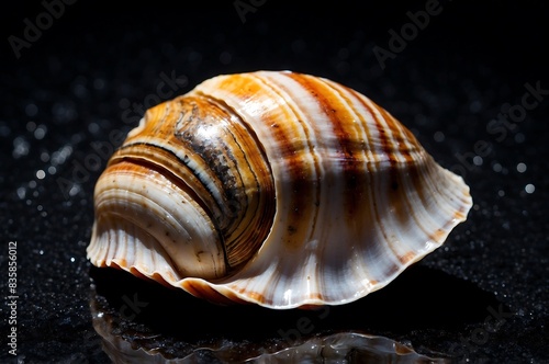 Obraz premium Exquisite Seashell with Intricate Patterns on a Black Canvas