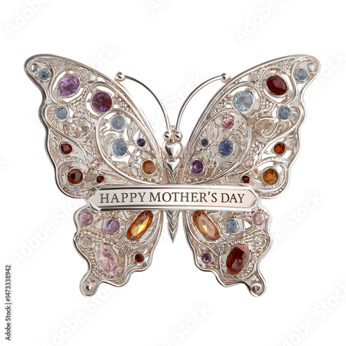 © Zanix, Obraz premium Exquisite silver butterfly jewelry adorned with colorful gemstones a perfect Mothers Day gift celebrating love and beauty ideal for mothers wives and special women