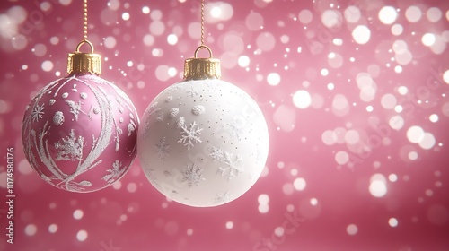 © The Little Hut, Fototapeta premium Exquisite Snowflake Ornaments on a Pink Background Crafting a Cozy and Joyful Christmas Scene : Generative AI