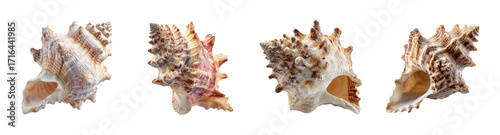 © STOCK AI, Obraz premium Exquisite Spiral Seashell Collection on Black Background PNG set Transparent backround