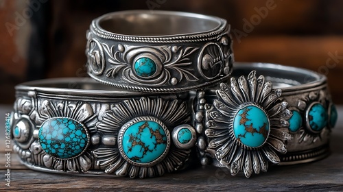 Obraz premium Exquisite Turquoise and Sterling Silver Bracelets