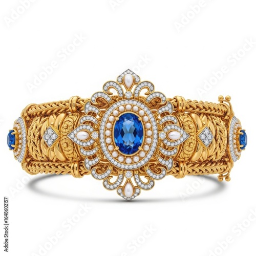 © png stock, Obraz premium Exquisite vintage gold sapphire and diamond ornate bracelet