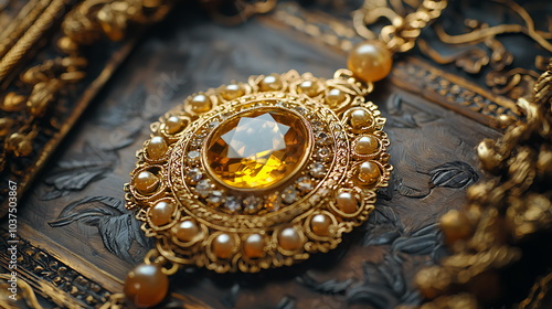 Obraz premium Exquisite vintage jewelry featuring intricate design and captivating amber gemstones for timeless elegance