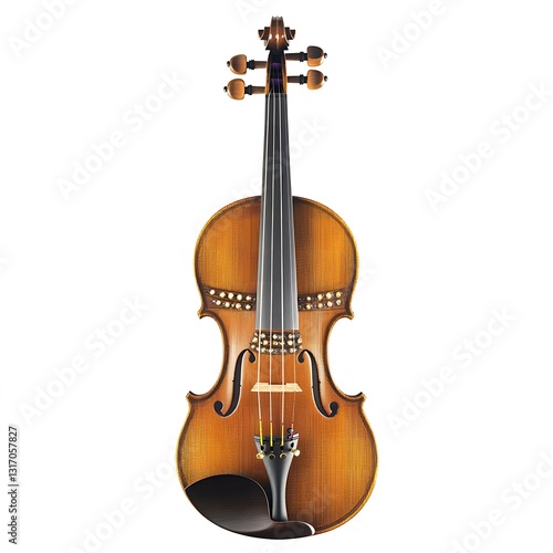 Fototapeta premium Exquisite Violin Polished Wood Classical String Instrument Isolated on White Background