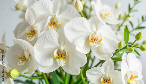 Obraz premium Exquisite white orchids bouquet in soft lighting, luxury floral design