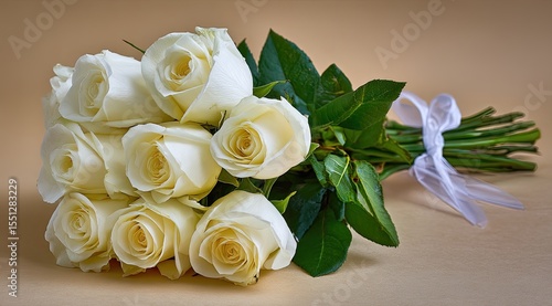 © Pokki, Obraz premium Exquisite White Roses with Lush Green Leaves