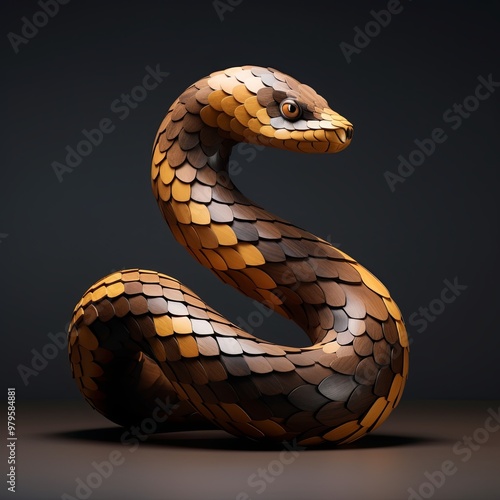 © Irinka Dimkovna, Fototapeta premium Exquisite Wood Carving of a Striking Snake with Realistic Scales and Patterns