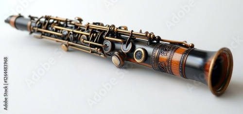 © Khoirul, Fototapeta premium Exquisitely Crafted Sopranino Saxophone: A Symphony of Black, Bronze, and Wood
