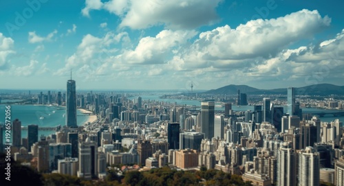 Obraz premium Extended city skyline capturing a vibrant coastal environment and skyscrapers