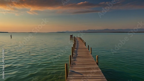 © Free, Fototapeta premium extends into a calm lake surrounded by distant mountains