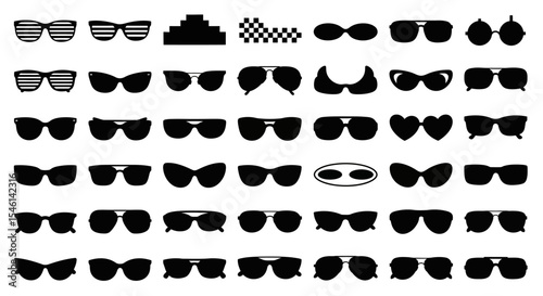 Fototapeta premium Extensive Collection of Sunglasses Silhouettes Diverse Styles & Shapes for Design Projects