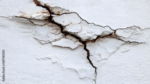 Fototapeta premium Extensive cracks in a weathered white wall.
