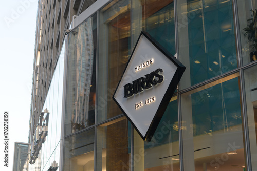 © eugen, Naklejka premium exterior building facade and sign of Maison Birks, a jewelry store, located at 55 Bloor St W, Unit 152, inside Manulife Centre, Toronto